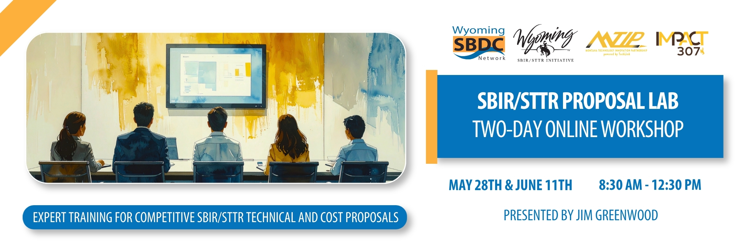 Join Wyoming SBDC Network, IMPACT 307, and the Montana Technology Innovation Partnership for a focused, two-part SBIR/STTR Proposal Lab designed to help you develop a competitive Phase I submission. The content will be relevant to all 11 SBIR and 6 STTR agencies, with particular emphasis on DoD, NIH, NSF, DOE, and NASA.