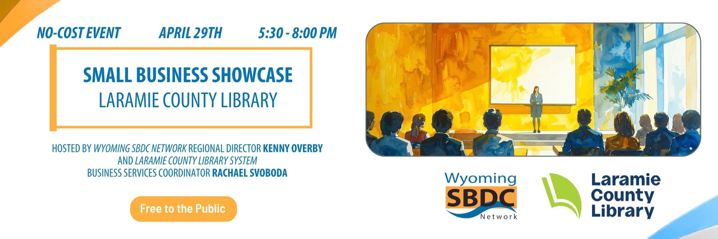 You are invited to attend a networking event featuring small business owners in Laramie County. Hear pitches from local small business owners, share your passion with an audience, and get to know your neighbors! Presented in partnership with the Wyoming SBDC Network and Wyoming Library to Business program.